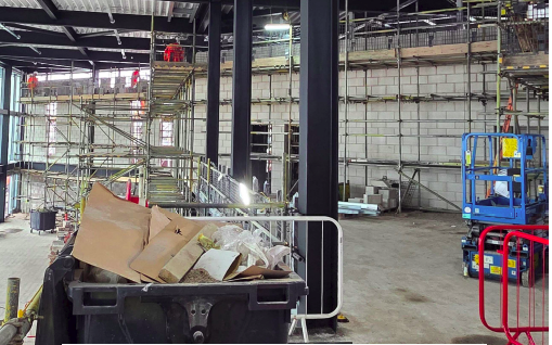 Work is underway to prepare the building for sustainable features, including solar panels.